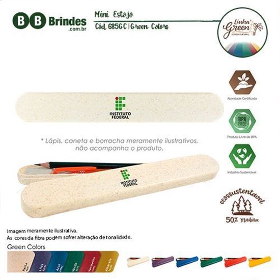 Capacidade para 2 canetas/lapis e borracha, não inclusos. Mini Estojo Escolar, feito com 50% de fibra natural de madeira e 50% de plástico Premium (PP), que garante sustentabilidade sem perder resistente, disponível em 6 cores especiais que utilizam pigmentos orgânicos na fabricação. Ideal para bolsas e mochilas.
